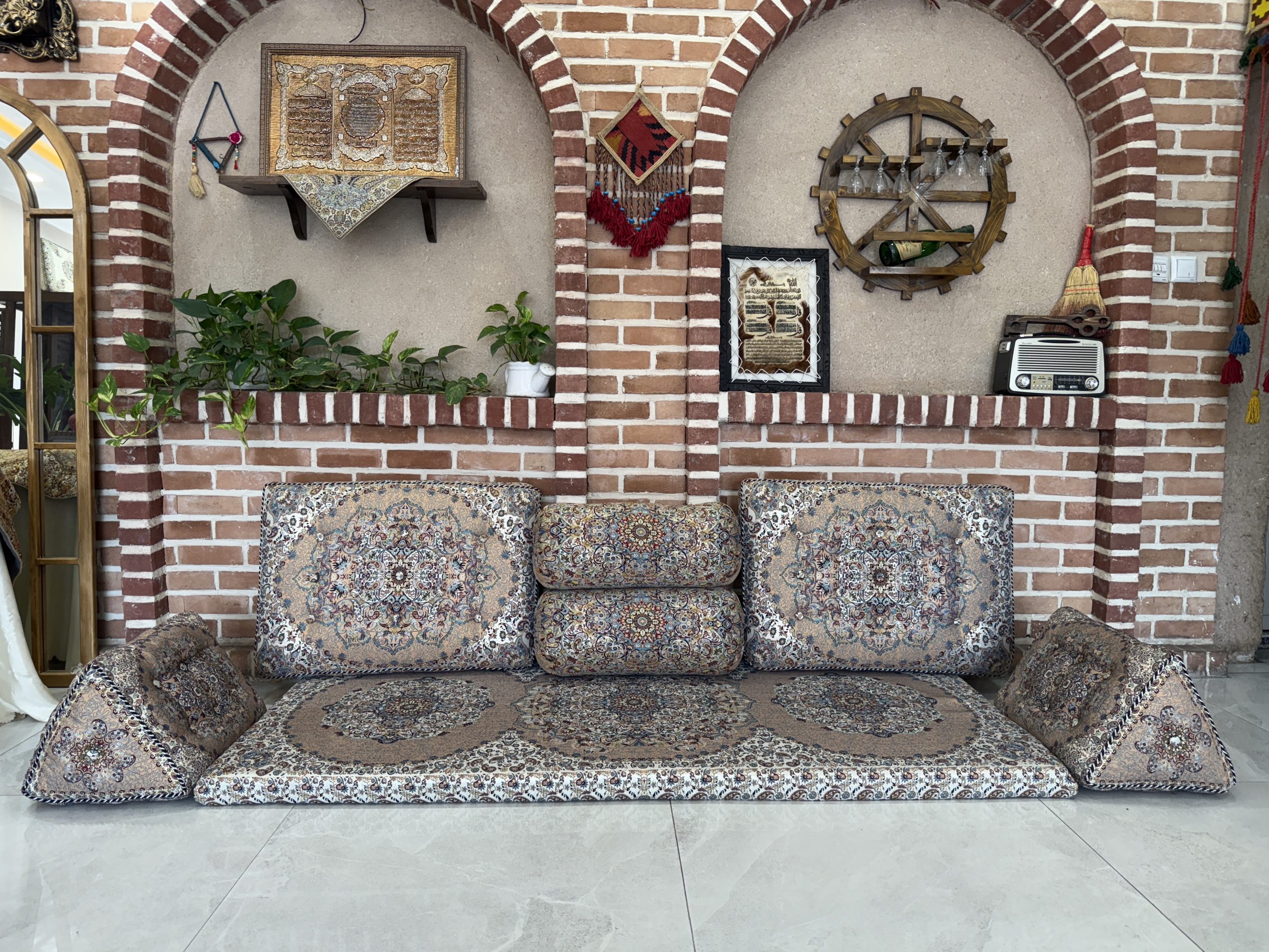 ست پشتی سنتی طرح بهشت رنگ نسکافه ای